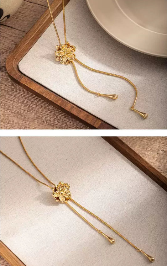 Gold Flower Y-Necklace